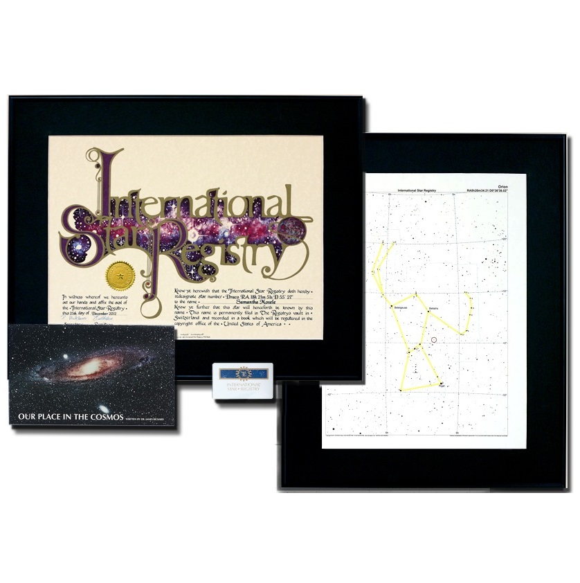- This Gift Package includes 2 frames. Your 12″ X 16″ name a star certificate and your 12″ X 16″ personalized star chart will BOTH arrive professionally framed and ready to display.